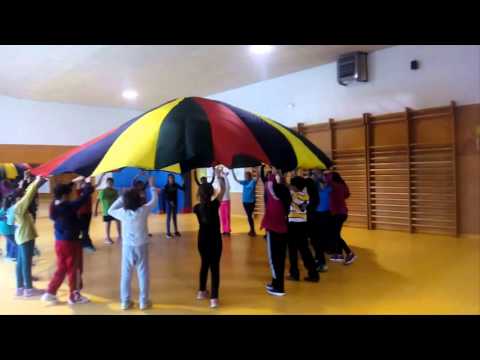 A educació física hem acabat el tema de Jocs cooperatius jugant amb el paracaigudes.